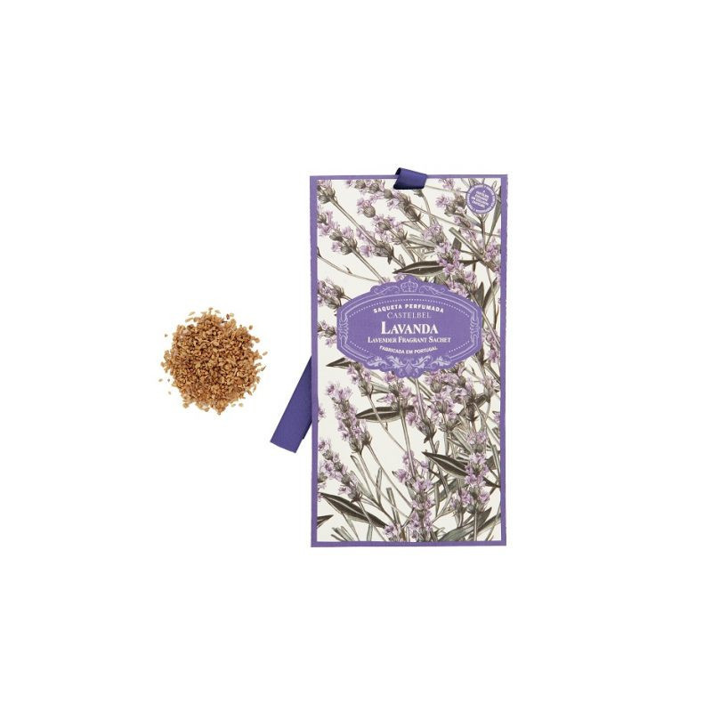 Castelbel Lavanda Saqueta Perfumada 10g fabricada com cortiça portuguesa, o que lhe permite libertar lentamente a fragrância, fazendo-a perdurar por mais tempo.