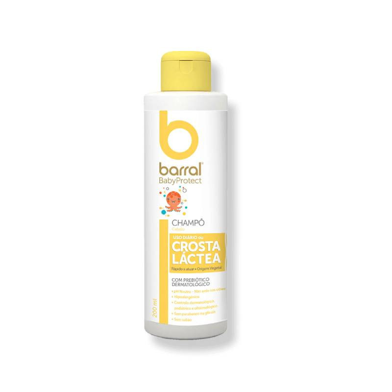 Barral BabyProtect Champô Crosta Láctea 200ml limpa e protege com suavidade o cabelo delicado e frágil do bebé e da criança, hidratando e suavizando o couro cabeludo.