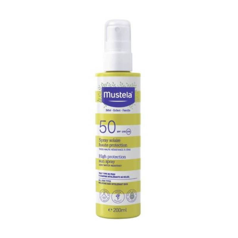 Mustela Solar Spray FPS50 é um protetor solar formulado com abacate BIO que protege a pele de toda a família da radiação UVA e UVB.