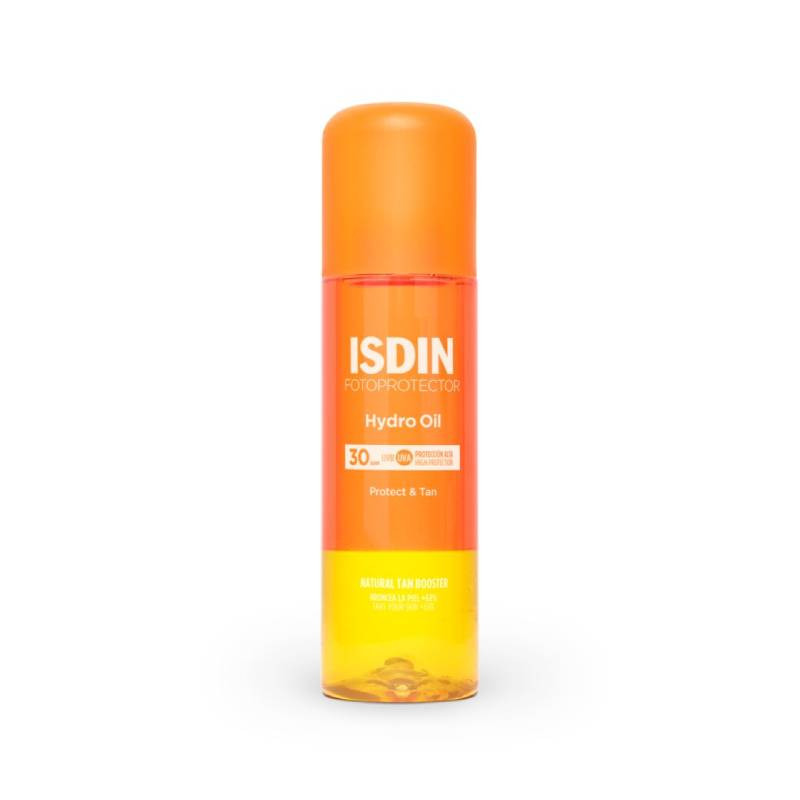 ISDIN Fotoprotector Hydrooil SPF30 é um protetor solar bifásico que protege e bronzeia a pele.