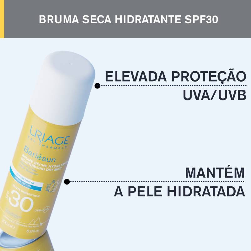 A Bariésun Bruma Seca Hidratante SPF30 oferece uma proteção eficaz e prática contra os raios UVA e UVB, com uma textura leve e refrescante ideal para uso ao ar livre. Enriquecida com Água Termal de Uriage e Aquaspongines, hidrata profundamente enquanto protege a pele dos danos causados pela radiação solar e pelos radicais livres.