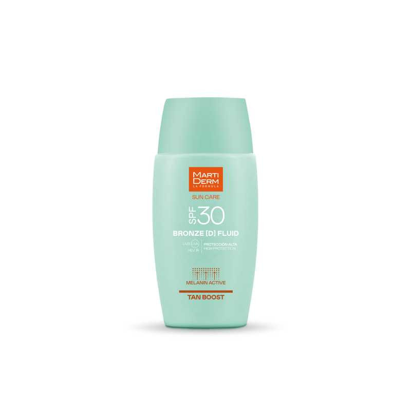 Martiderm Sun Care Bronze D Fluid FPS30 50ml é um protetor solar de rosto que potencia e prolonga o bronzeado, indicado para todos os tipos de pele.