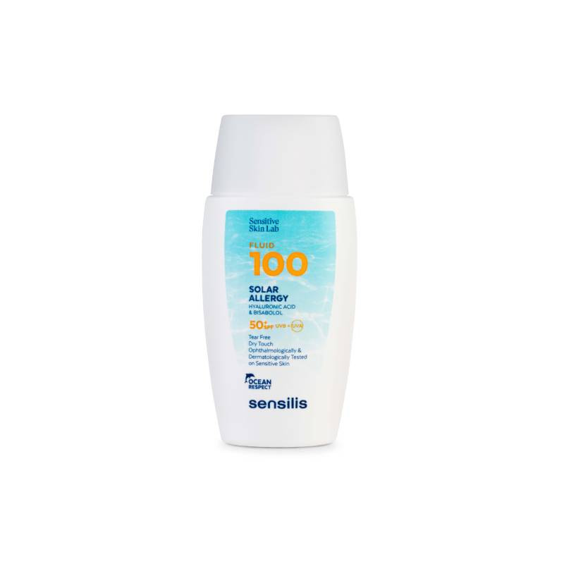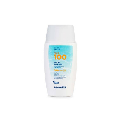 Sensilis Sun Fluid 100 Solar Allergy 50+ fotoprotetor muito elevado com ação antienvelhecimento, para peles sensíveis, muito claras ou intolerantes ao sol.