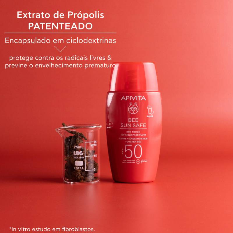 Apivita Bee Sun Fluido Invisível de Toque Seco SPF50 50ml é um protetor solar de rosto fluido, rapidamente absorvido para oferecer alta proteção, deixando a pele fresca e hidratada.