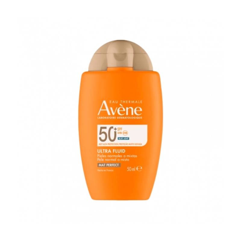Avène Solar Ultra Fluid Mat Perfect Cor FPS 50+ 50ml é um protetor solar de rosto fluido e elevada tolerância, indicado para pele normal a mista.