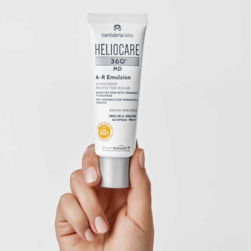 O protetor solar Heliocare 360º MD A-R Emulsão FPS50+ é ideal para pele sensível com tendência a vermelhidão.