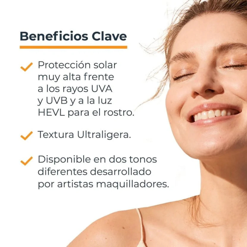 Isdin FotoUltra 100 Active Unify Color Fusion Fluid FPS50+ é um fotoprotetor facial fluido com tripla ação despigmentante que aclara e uniformiza o tom da pele.