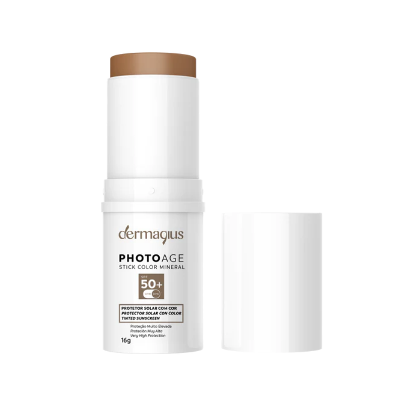 O Dermagius Photoage Stick Mineral FPS 50+ Cor MÉDIO é um protetor solar em stick com filtros 100% minerais, especialmente formulado para oferecer alta proteção contra os raios UVA, UVB e luz visível, enquanto uniformiza o tom da pele com um acabamento natural.