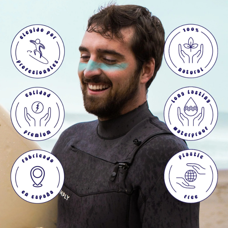 A sua fórmula é 100% natural, resistente à água e desenvolvida para oferecer proteção de longa duração, mesmo durante atividades intensas ou em contacto com água.