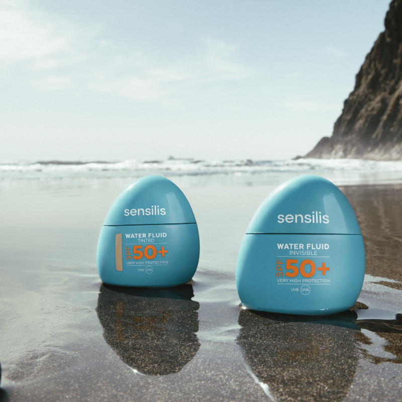 O Water Fluid 50+ Color da Sensilis é para quem quer proteção solar sem sentir que tem qualquer coisa na pele. A textura aquosa espalha-se suavemente, uniformiza o tom, disfarça imperfeições, e deixa um acabamento mate, sedoso, natural. Não marca, não brilha, não pesa.