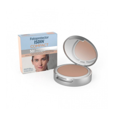 ISDIN Fotoprotector Compact Areia FPS50+ 10g é um protetor solar facial compacto com cobertura natural de longa duração.
