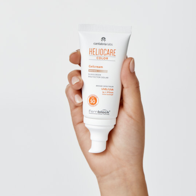 Heliocare Gelcor Castanho SPF50 oferece proteção alta e eficaz contra os raios UVB e UVA, com propriedades antioxidantes e reparadoras graças ao Fernblock®.