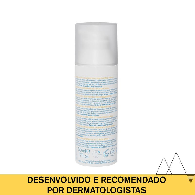 Uriage Bariésun 100 Fluido de Proteção Extrema SPF50+ combina um complexo filtrante com elevada eficácia e duas patentes dermatológicas para conferir proteção extrema à pele intolerante ao sol. Ajuda a prevenir o fotoenvelhecimento e os danos celulares provocados pelos raios UVA, UVB e pela luz azul.