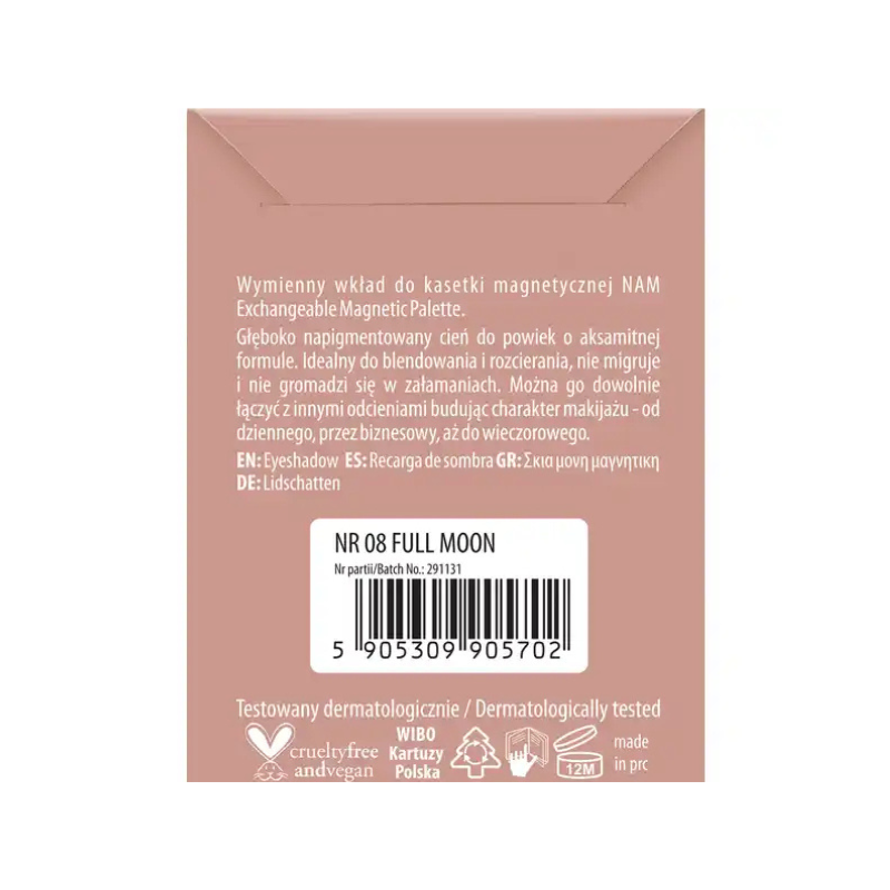NAM Eyeshadow Insert 08 Full Moon é uma sombra de olhos com pigmentos brilhantes para um acabamento perolizado e glamour luminoso nas pálpebras.
