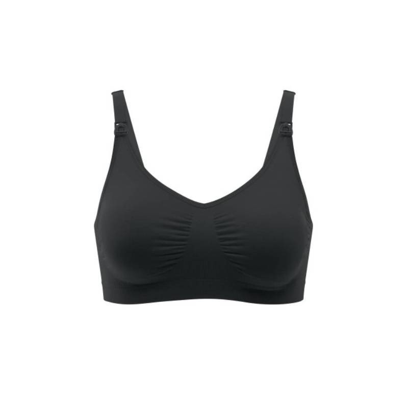 Soutien preto de maternidade e amamentação Keep Cool com zonas de respiração, secagem rápida e tecido adaptável. Apoio suave e conforto duradouro desde a gravidez até à amamentação.