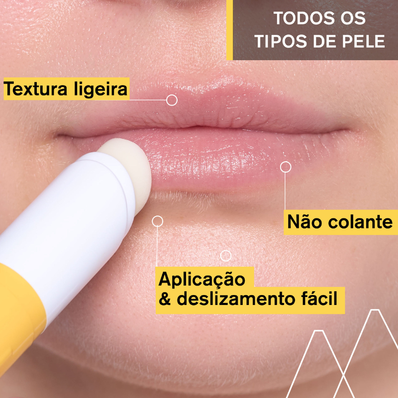 - Enriquecido com Manteiga de Karité e as vitaminas A, C e E, nutre os lábios.