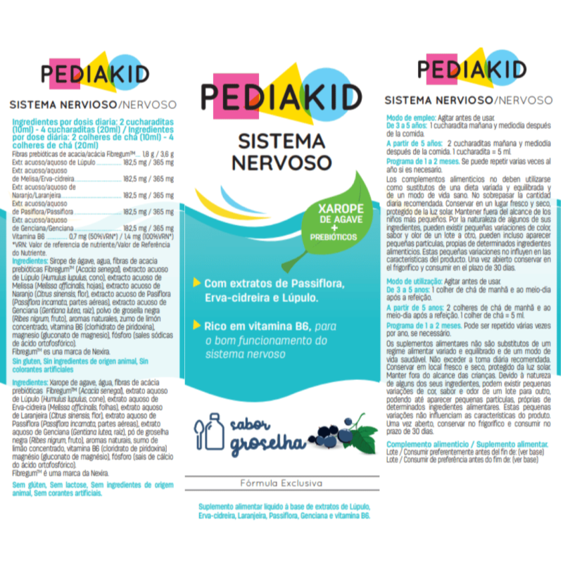 • Inovação Pediakid: Baseado numa combinação exclusiva de xarope de agave e fibra prebiótica de acácia para uma melhor absorção e apoio à saúde intestinal.