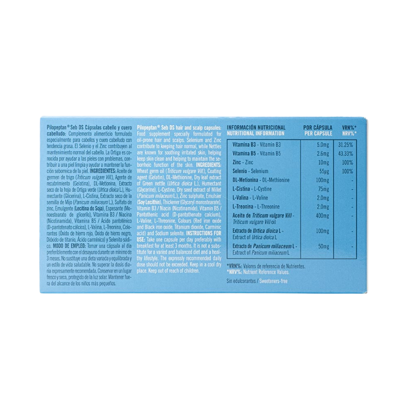 Pilopeptan Seb DS Cápsulas é um suplemento alimentar especialmente formulado para cabelos e couro cabeludo oleosos.