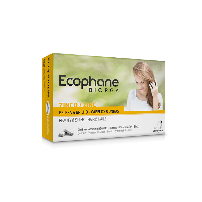 Ecophane Biorga Comprimidos é um suplemento alimentar que ajuda a manter a força e o volume do cabelo, indicado para quem sofre de queda de cabelo ocasional e fragilidade leve a moderada do cabelo e unhas. A fórmula contém Vitamina B6 contribui para a síntese normal da cisteína; Zinco ajuda a proteger as células contra o stress oxidativo e desempenha um papel no processo de divisão celular; Bbiotina e o Zinco contribuem para a manutenção de um cabelo normal e unhas saudáveis.