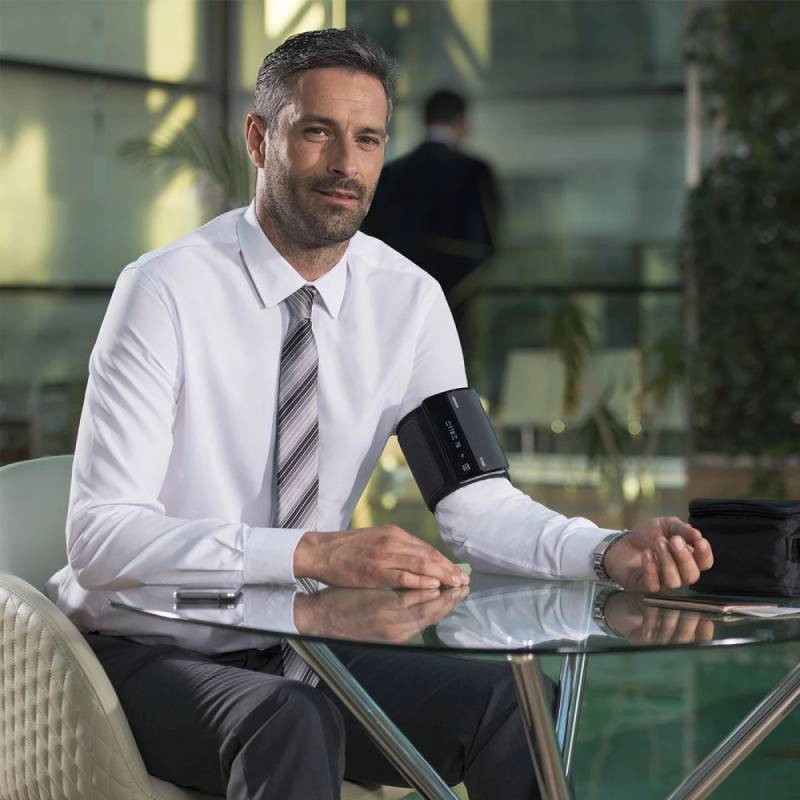 Veroval Compact+ Tensiómetro de Braço é um monitor de pressão arterial de braço com medição tripla automática da pressão arterial que detecta fibrilação atrial e arritmias.