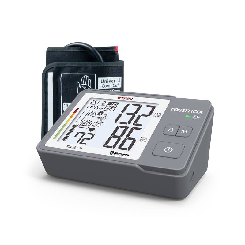 Rossmax Tensiómetro Digital de Braço X5 PARR é um aparelho de pressão arterial equipado com tecnologia avançada para detecção de arritmias e outros indicadores de saúde cardiovascular.
