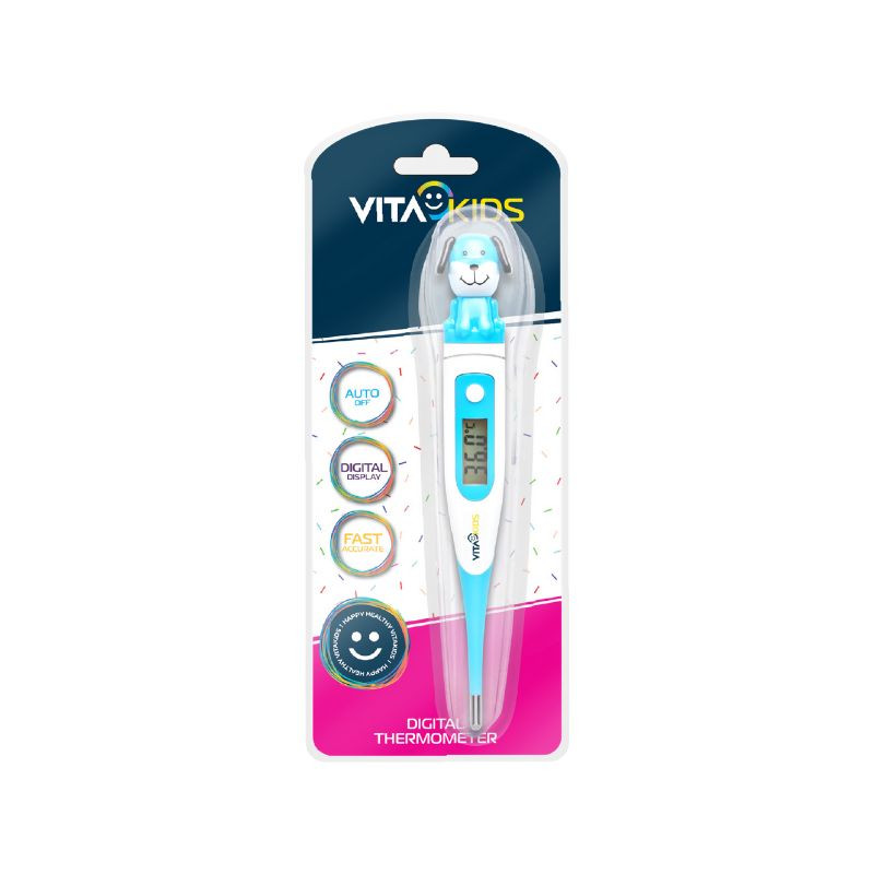Vitakids Termómetro Digital Cão Azul é um termómetro digital compacto, preciso e de fácil medição da temperatura corporal.