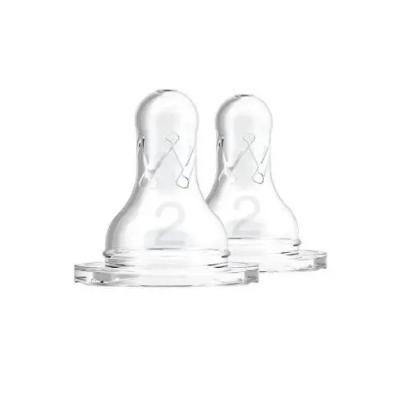 Tetina de silicone Dr. Brown's nível 2, recomendada a partir dos 3 meses. Fluxo intermédio para bebés em crescimento. Silicone médico, livre de BPA. Substituição para biberões Dr. Brown's.