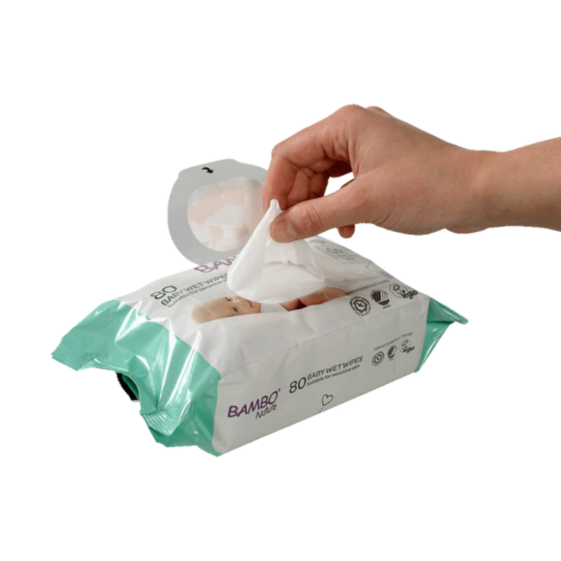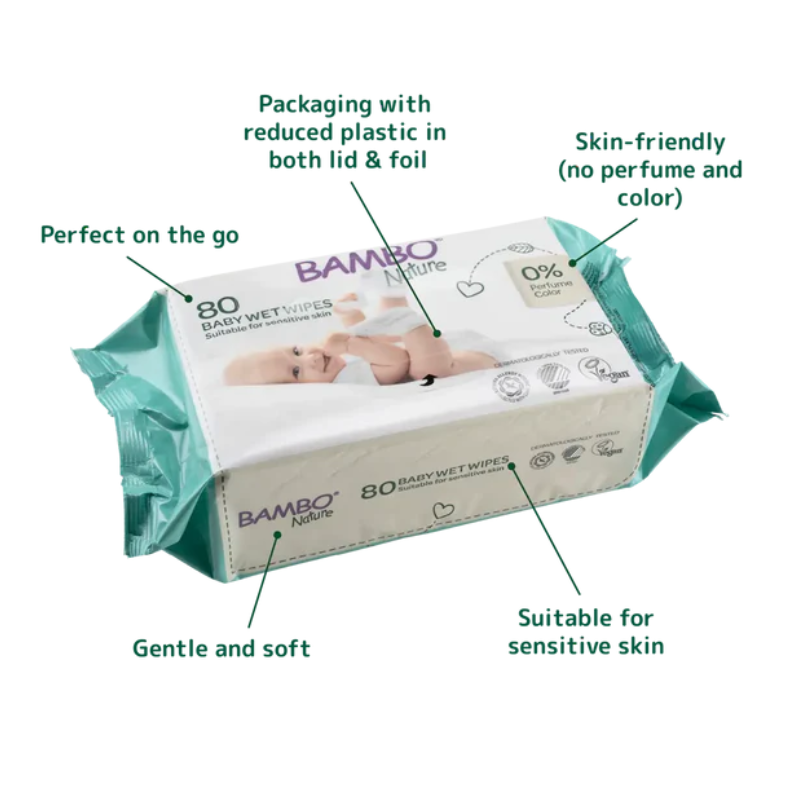 As Toalhitas Bambo Nature com 0% perfume são feitas com materiais suaves e macios, sendo amigas da pele e ideais para a pele sensível do bebé.
