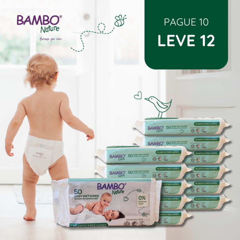 Cuidado superior, economia máxima e respeito pela pele do teu bebé. O Pack Económico Bambo Nature oferece uma solução prática e vantajosa, reunindo 12 embalagens das famosas toalhitas sem perfume, numa oferta especial (10 + 2 de oferta). Concebidas com uma preocupação dupla, pelo planeta e pela pele sensível, estas toalhitas são uma escolha consciente e segura para os cuidados diários.
