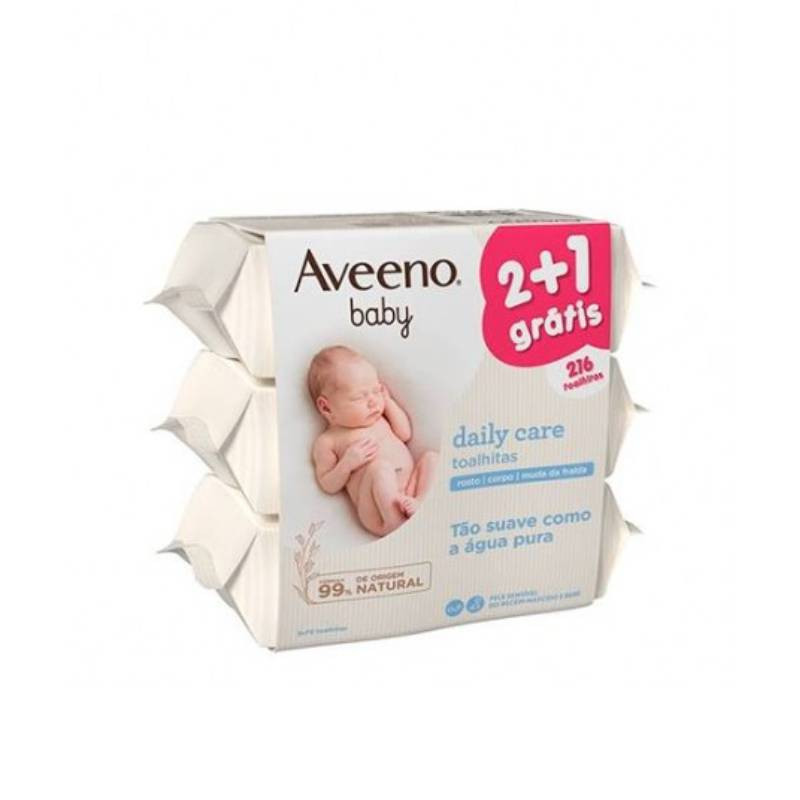 Aveeno Baby Toalhitas Limpeza 3x72 é um pack composto por 3 embalagens cada uma com 72 toalhitas. Aveeno Baby Toalhitas Limpeza é um cuidado de limpeza sem exaguamento de rosto e corpo, indicado para a pele delicada do bebé.
