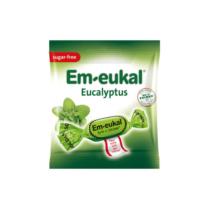 Em-eukal Vitamin Shot sem Açúcar 75g é uma pastilha para a tosse com concentrado de sumo de frutas feito de romã e óleo de laranja, um sabor picante e frutado na cobertura e no recheio.