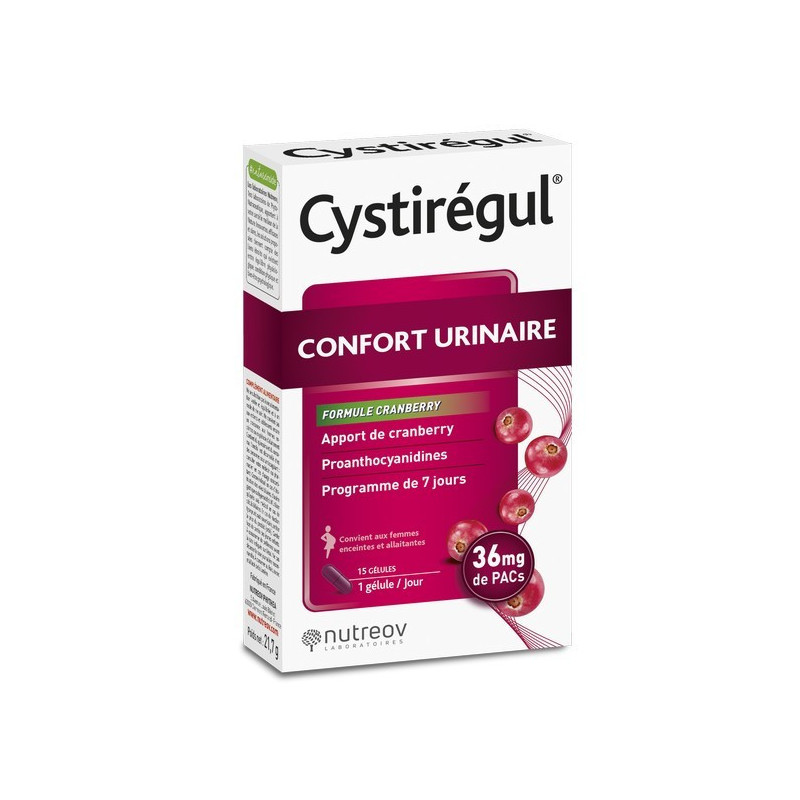 Nutreov Cystirégul Plus Comprimidos é um suplemento alimentar em comprimidos, indicado para quem sofre de desconforto urinário intenso.