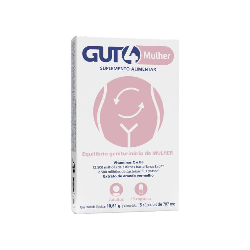 Gut4 Mulher Cápsulas x15 é um suplemento alimentar para o equilíbrio geniturinário da mulher.