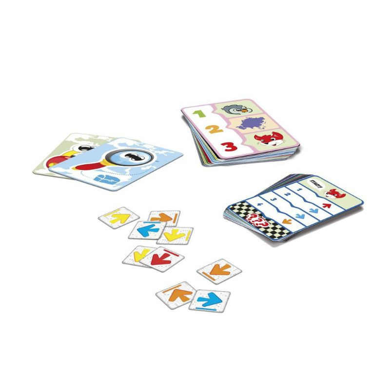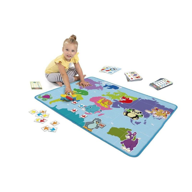 - Inclui: 1 tapete macio (110 x 80 cm), 1 avião falante e eletrónico, 31 cartas de missão, 15 blocos direcionais para programar o caminho antes de executar.