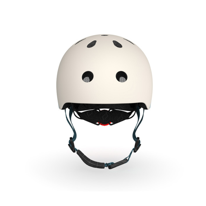 Capacete infantil SCOOT&RIDE tamanho XXS-S (45-51cm) na cor areia. Segurança certificada EN1078, ajuste infinito com dial, luz LED integrada (3 modos) e fecho magnético. Confortável e ventilado. Ideal para trotinete, bicicleta e skate.