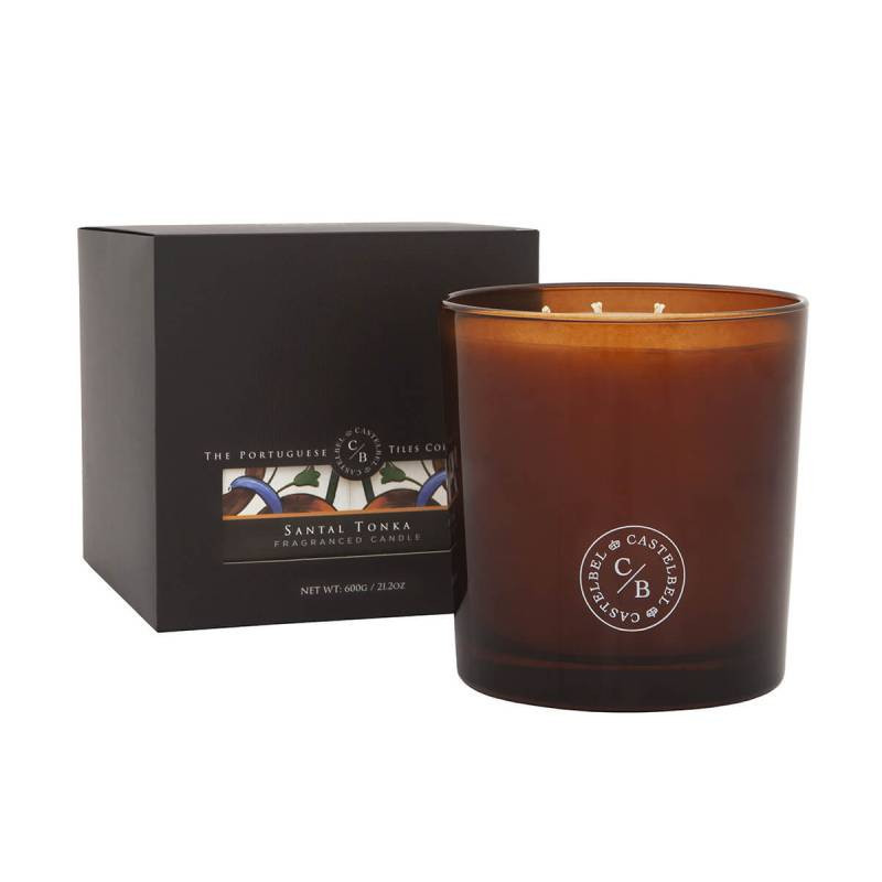 Castelbel Tiles Vela Aromática 3 Pavios Santal Tonka 600g é uma vela cuidadosamente enchida e perfumada com uma fusão exótica e quente, uma combinação única de Sândalo e Fava-Tonca.