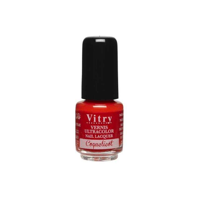 Vitry Mini Verniz 132 Coquelicot 4ml é um verniz com um tom vermelho para fixação e brilho extremos, perfeito para as unhas mais frágeis.