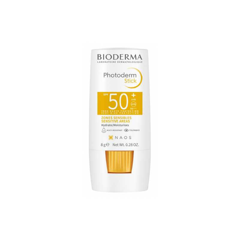 Bioderma Photoderm Stick FPS50+ é um protetor solar muito elevado para pele sensível e todos os tipos de pele, com 8 horas de hidratação.